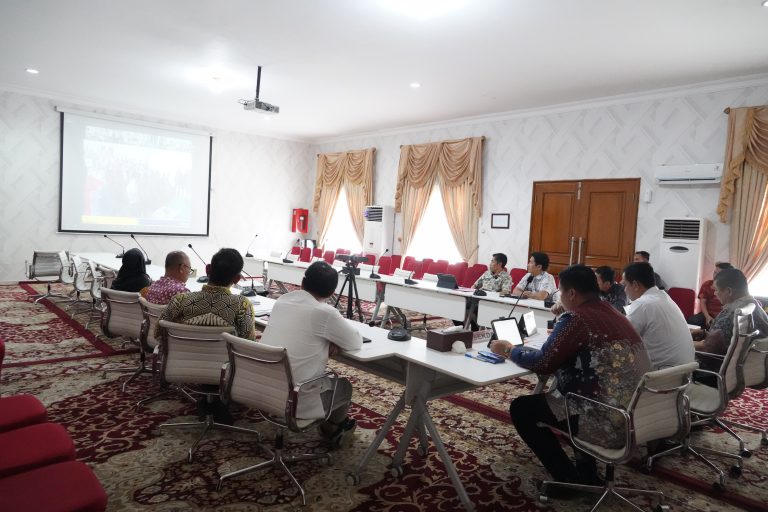 didampingi Sekretaris Daerah Kabupaten Banyuasin Ir Erwin Ibrahim ST MM MBA IPU ASEAN Eng dan Kepala Dinas Perkimtan Kabupaten Banyuasin Ir H M Riyan Aditya Saputra MT IPM ASEAN, di Ruang Rapat Guest House Rumah Dinas Bupati Banyuasin, Jumat (14/3).