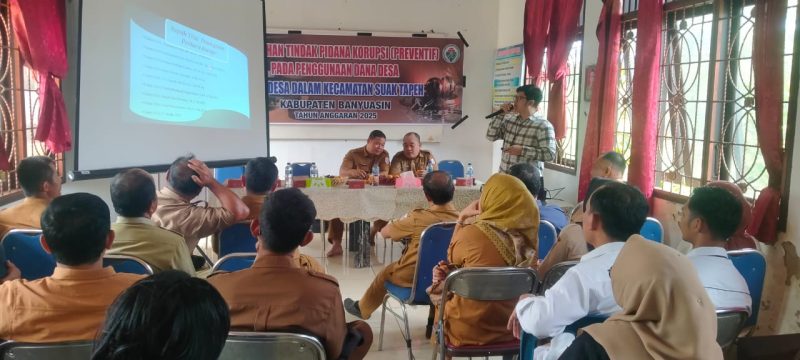 BANYUASIN,inewsnusantara.com,-Sebagai langkah antisipasi dan pencegahan terjadinya tindak pidana korupsi keuangan desa 11 desa dalam Kecamatan Suak Tapeh, mengikuti penyuluhan hukum tindak pidana korupsi (Preventif) penggunaan dana desa (DD).