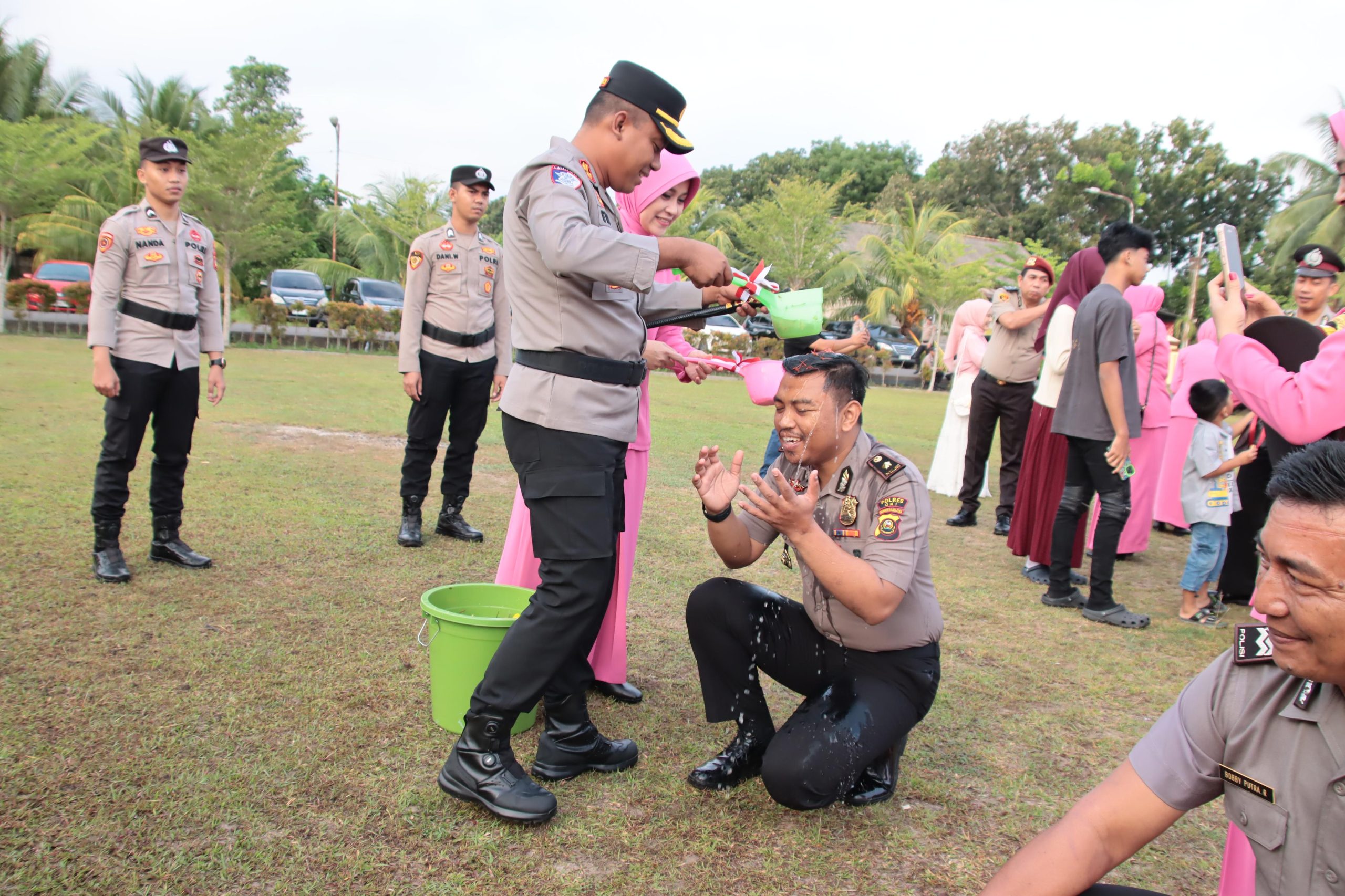 Usai upacara, kegiatan dilanjutkan dengan prosesi pemasangan pangkat baru oleh Bhayangkari kepada masing-masing personil yang telah menikah. Momen ini berlangsung penuh haru dan kebanggaan, mencerminkan dukungan keluarga sebagai pilar utama dalam pengabdian anggota Polri.