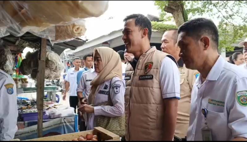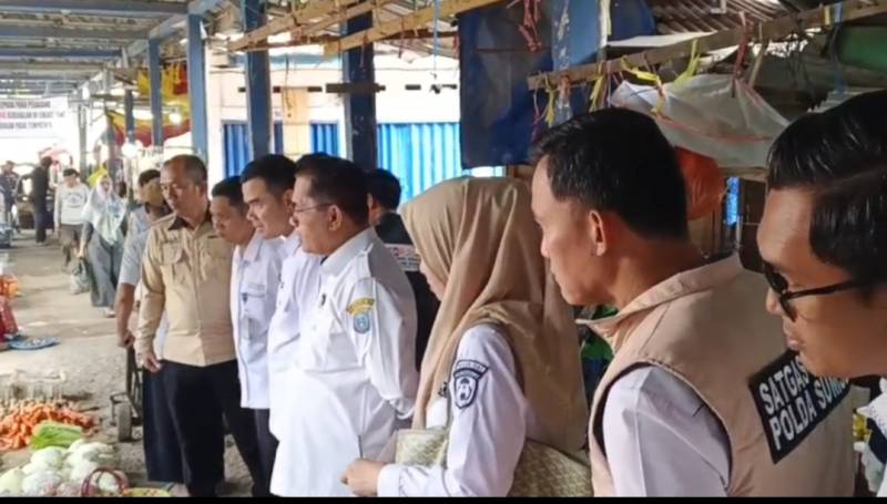 Rombongan ini berkeliling menyisir pasar menyapa pedagang satu persatu untuk mempertanyakan harga sekaligus stok sembako yang ada terlebih di bulan suci ramadhan dan jelang hari raya idulfitri nanti.