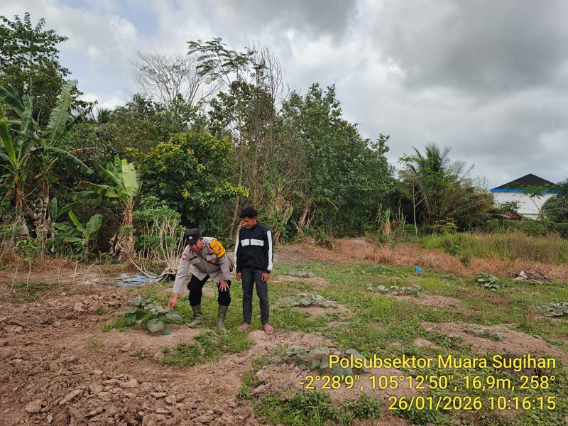 Bhabinkamtibmas Polsek Muara Padang, Aiptu Darsandi Supriyadi SH, melakukan sambang dan memberikan himbauan kepada warga agar memanfaatkan lahan pekarangan sebagai sumber ketahanan pangan.