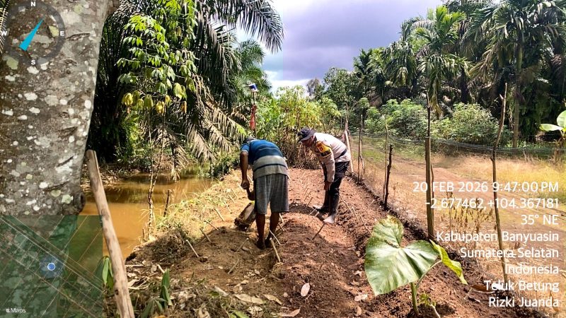 BANYUASIN -INC,-Upaya memperkuat ketahanan pangan nasional terus digelorakan hingga ke tingkat desa. Melalui peran aktif Bhabinkamtibmas, masyarakat diajak untuk bersama-sama membangun kemandirian pangan dimulai dari lingkungan keluarga.