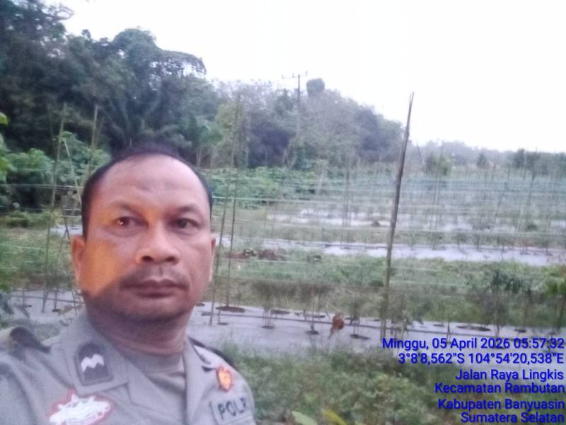 BANYUASIN–INC,-Dalam upaya mendukung program pemerintah mewujudkan ketahanan pangan nasional, seorang Bhabinkamtibmas Polsek Rambutan, Aipda Arifin Ahmad SH, terlihat aktif melaksanakan kegiatan perawatan tanaman cabai di lahan pekarangan warga. Kegiatan ini berlangsung pada Minggu (5/4) siang, di Desa Tanah Lembak, Kecamatan Rambutan, Kabupaten Banyuasin.