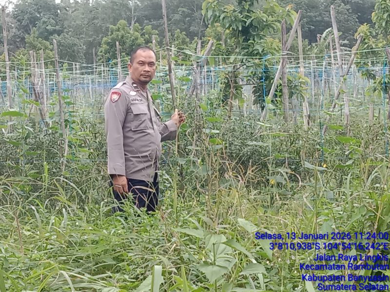 BANYUASIN–INC,-Upaya memperkuat ketahanan pangan terus dilakukan jajaran Kepolisian hingga ke tingkat desa. Bhabinkamtibmas Polsek Rambutan terjun langsung ke lapangan dengan mendampingi masyarakat dalam pengelolaan pekarangan pangan bergizi.