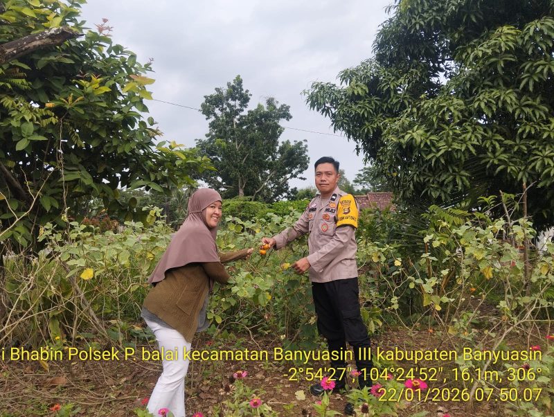 Bhabinkamtibmas Polsek Talang Kelapa, Aipda Antoni, turun langsung ke tengah masyarakat untuk memberikan himbauan sekaligus mengajak warga agar aktif melaksanakan Program Pekarangan Pangan Bergizi (P2B) sebagai langkah nyata memperkuat ketahanan pangan di tingkat keluarga dan lingkungan.