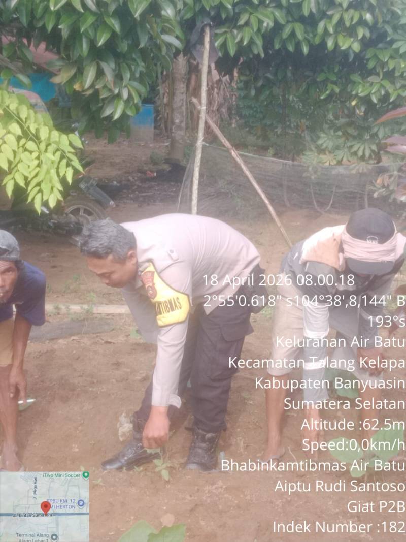BANYUASIN–INC,-Dalam upaya mendukung program strategis Pemerintah Pusat di bidang ketahanan pangan, Polsek Talang Kelapa melalui peran Bhabinkamtibmas aktif menggerakan masyarkat di Desa Binaannya.