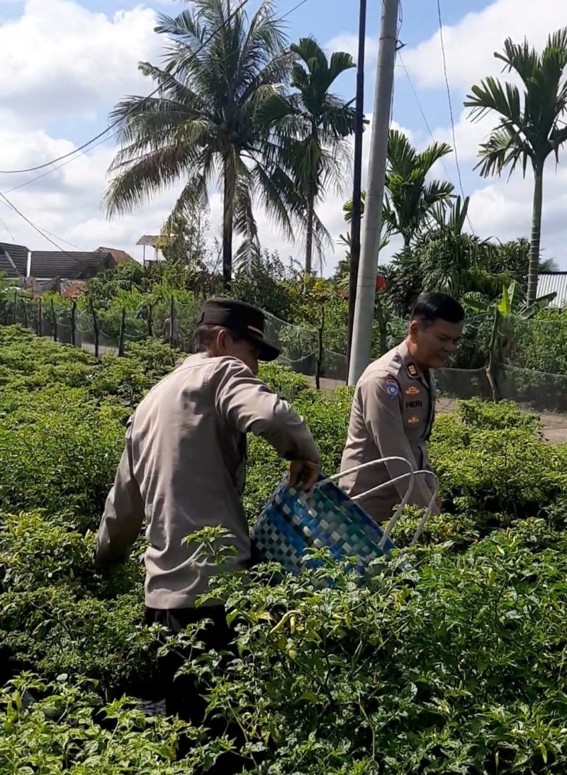 Bhabinkamtibmas Polsek Talang Kelapa Melakukan Panen Cabai di Lahan P2B Percontohan Kelurahan Tanah Mas