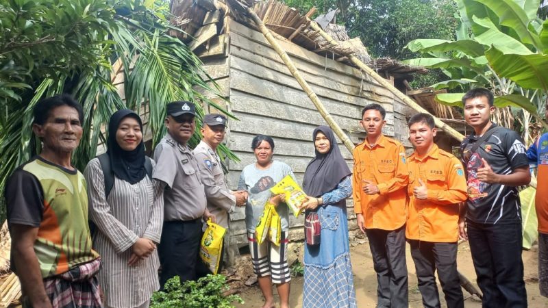 Bhabinkamtibmas Polsek Tanjung Raja Salurkan Bansos Kepada Keluarga Pemilik Rumah Ambruk Ditimpa Pohon