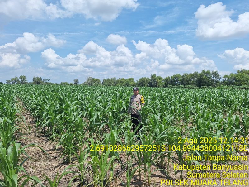 BANYUASIN,inewsnusantara.com,- Bhabinkamtibmas Polsek Muara Telang Bripka Khaerul Saleh melakukan pengecekan dan peninjauan lahan Jagung dan Sosialisasi Harga Jagung di Desa Telang Jaya di Kecamatan Muara Telang