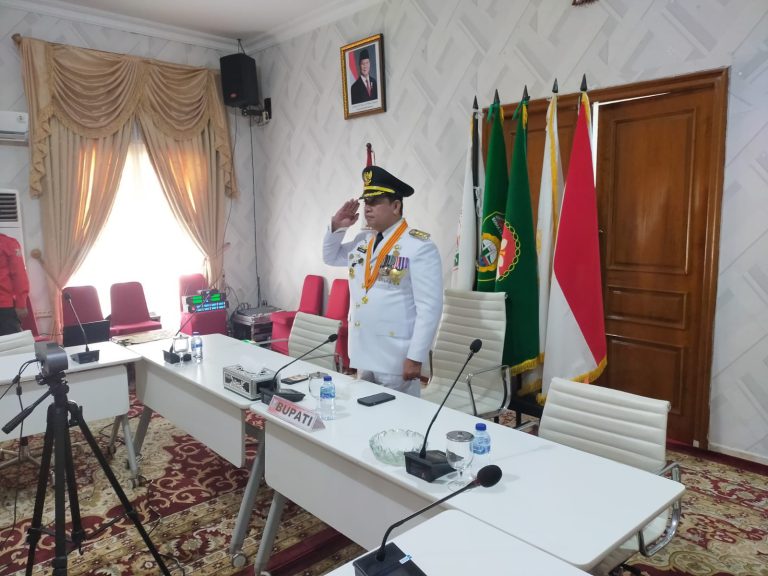 BANYUASIN,inewsnusantara.com,- Pemerintah Kabupaten Banyuasin mengikuti upacara bendera dalam rangka Memperingati Hari Otonomi Daerah Ke-XXIX secara daring di Guest House Rumah Dinas Bupati Banyuasin, Jumat (25/4).