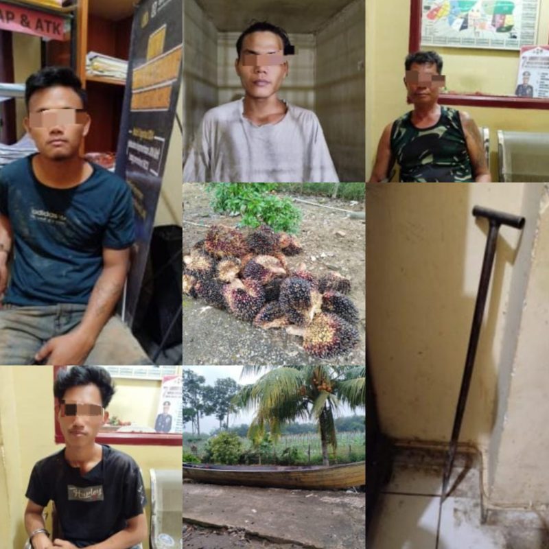 Tidak lama kemudian saat kelima pelaku sedang memindahkan buah sawit hasil curian dari atas kapal ketek ke daratan maka personel Polsek Rambutan bersama sama warga langsung melakukan penyergapan dan berhasil mengamankan para pelaku 4 orang yakni EI, EN, DI, dan RO
