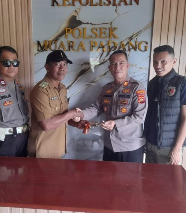 Dukung Ops Senpi 2025, Kades Sidomulyo 20 Serahkan Satu Pucuk Senpira Ke Polsek Muara Padang