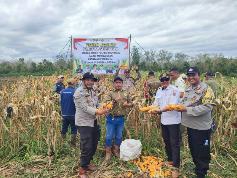 BANYUASIN,inewsnusantara.com,- Gugus tugas Ketahanan Pangan (Ketapang) Polres Banyuasin, melalui Polsek Betung sukses Panen jagung perdana dilahan milik PT Citra Sembawa yang berlokasi di Desa Meranti Kecamatan Suak Tapeh, Rabu (18/6).