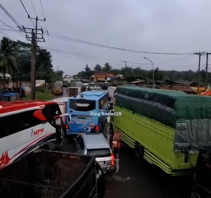 Banyuasin, inewsnusantara.com,-Jalan Lintas Timur Sumatera ruas Palembang-Betung macet total sejak Jum’at 20/12/2024 hingga Sabtu 21/12/2024 sore.Kemacetan bermula kerusakan mobil tronton Jum’at 20/12/2024, kemacetan sempat terurai namun ternyata penumpukan kendaraan tersebut memicu kemacetan parah Sabtu 21/12/2024.