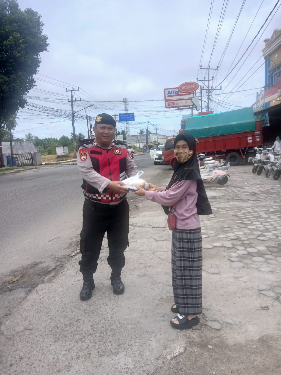 “Saya sangat berterima kasih karena dapat nasi kotak dari pak polisi. Biasanya kami takut kalau ketemu polisi, ternyata mereka baik-baik,” katanya sembari tersenyum bahagia.