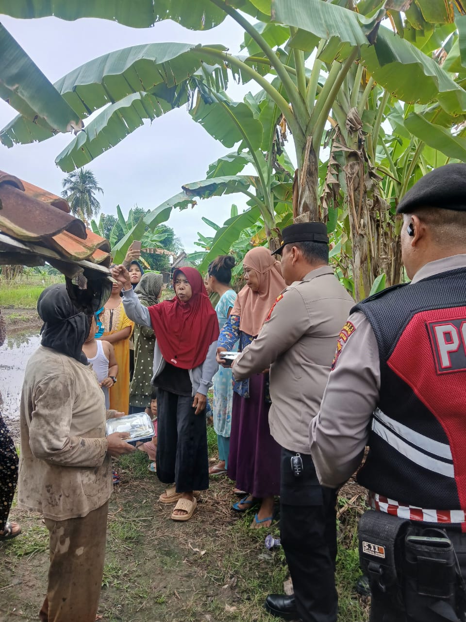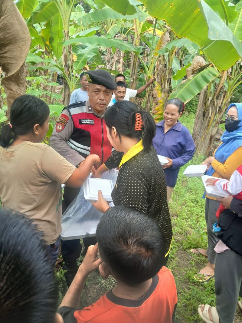 Dalam kesempatan tersebut ratusan warga setempat mendapatkan bantuan berupa nasi kotak dan nasi bungkus.