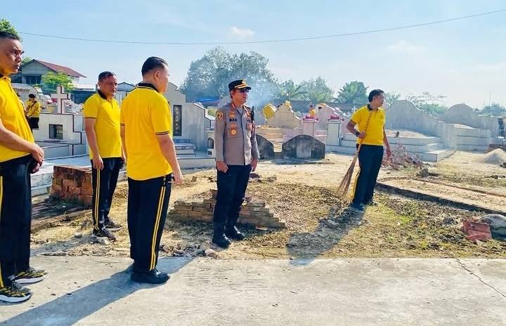 Pangkalpinang, INC,. – Polresta Pangkalpinang terus menunjukkan komitmennya, dalam menjaga kebersihan dan kelestarian lingkungan melalui kegiatan kurvei atau kerja bakti yang digelar di area perkebunan Tionghoa Pasir Garam, Kecamatan Tamansari, Jumat (3/4/2026) pagi.