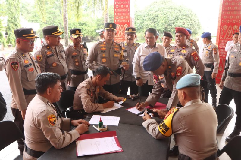 BANYUASIN,inewsnusantara.com,– Kapolres Banyuasin AKBP Ruri Prastowo SH SIK MIK, melakukan pengecekan rutin terhadap senjata api (senpi) dinas serta kelengkapan yang dipegang oleh personel Polres Banyuasin