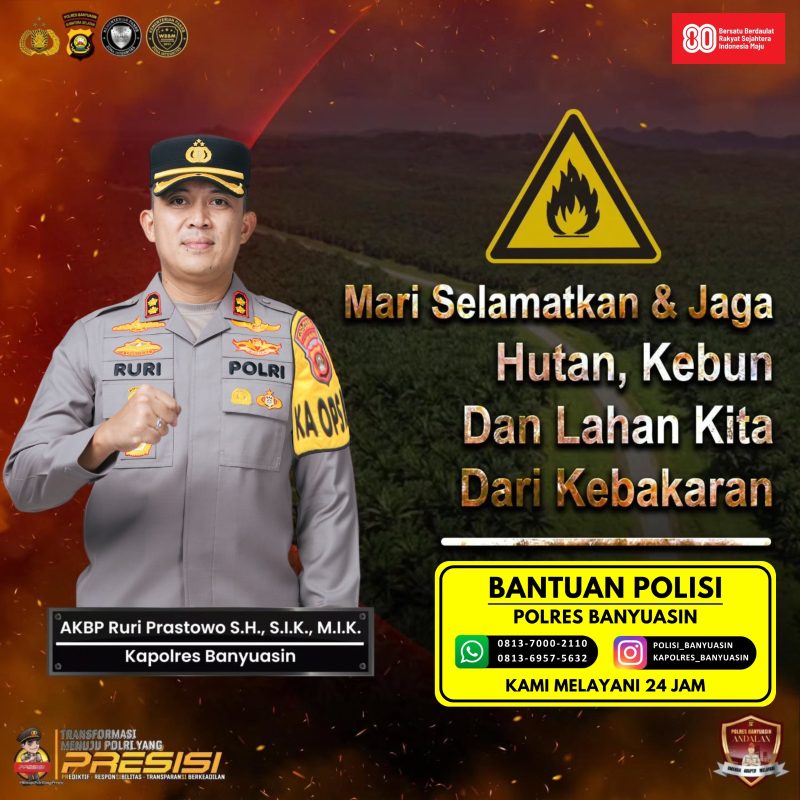 Dan keselamatan Masyarakat Kabupaten Banyuasin. Polres Banyuasin bersama instansi terkait seperti BPBD dan Manggala Agni terus meningkatkan patroli dan kesiapan penanganan darurat di wilayah rawan. (Adm).