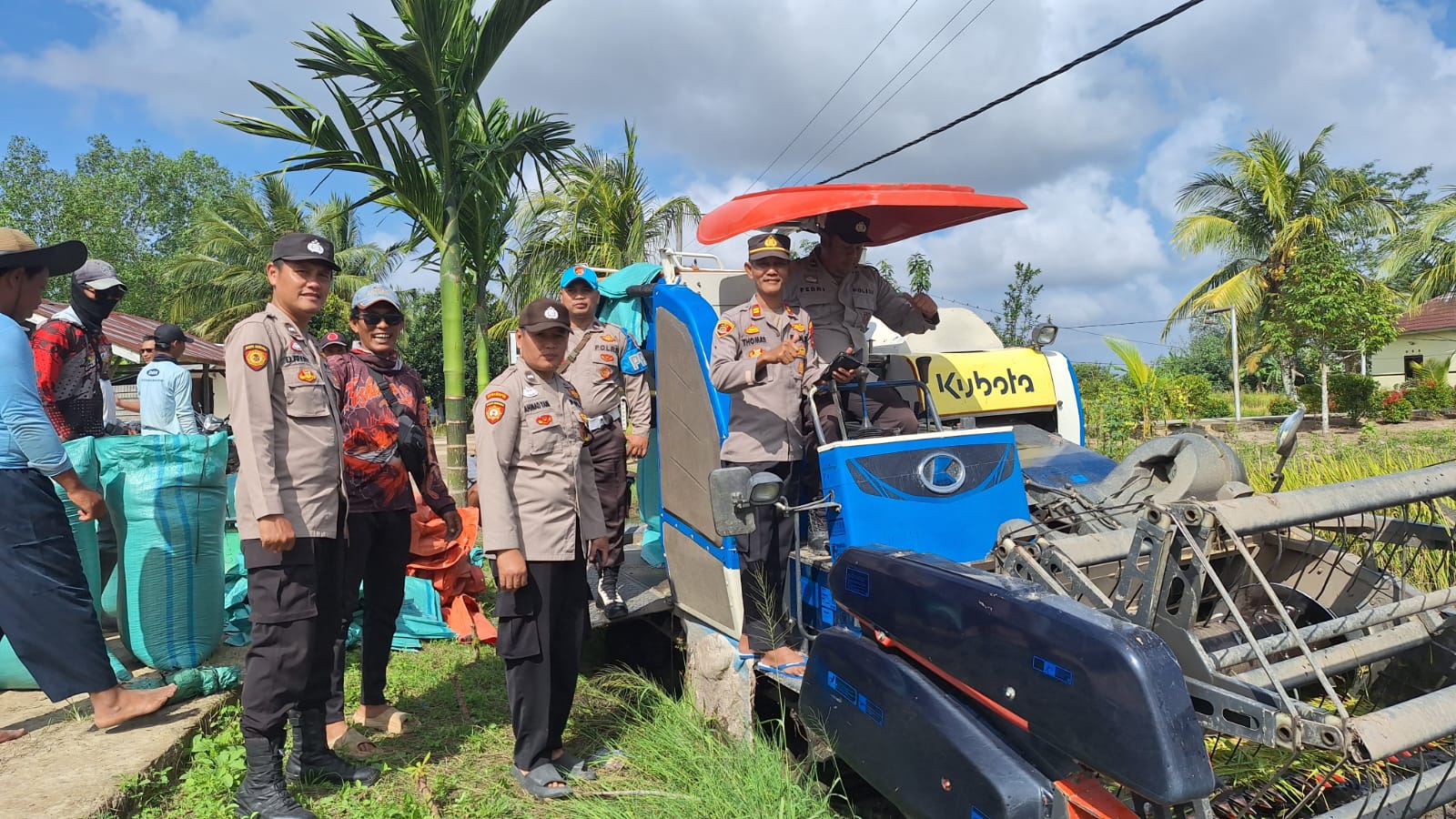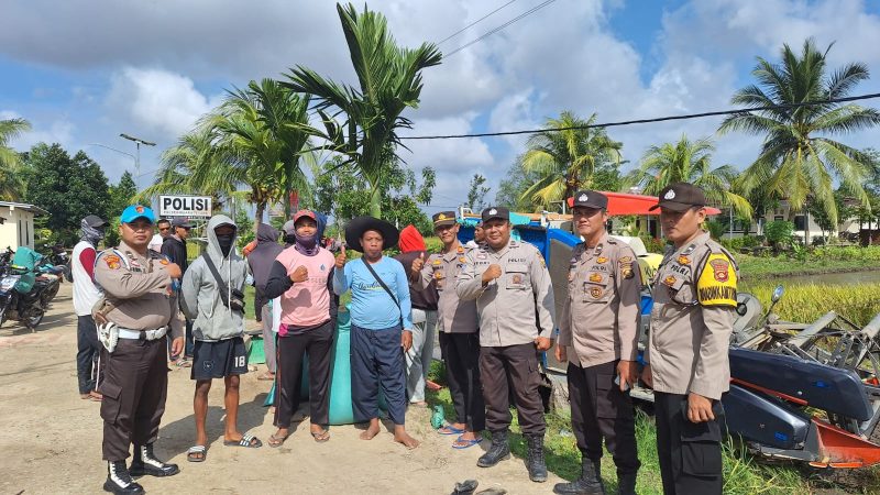Kapolsek Muara Telang Bersama Anggota Melaksanakan Panen Raya Padi
