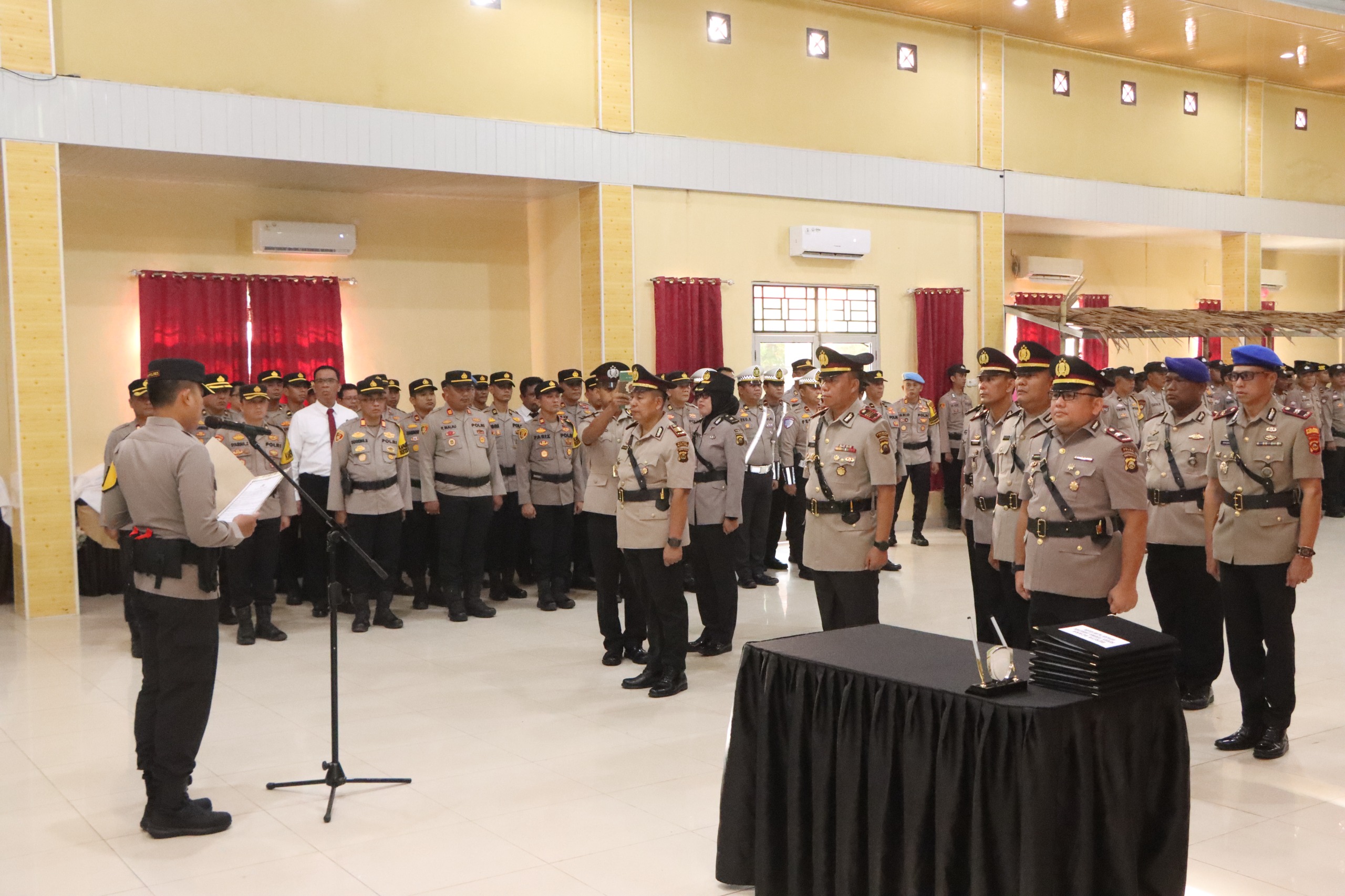 Kapolres Banyuasin AKBP Ruri Prastowo dalam sambutannya menyampaikan bahwa pergantian pejabat merupakan bagian dari dinamika organisasi yang sehat dan bertujuan untuk meningkatkan profesionalisme serta pelayanan kepada masyarakat.