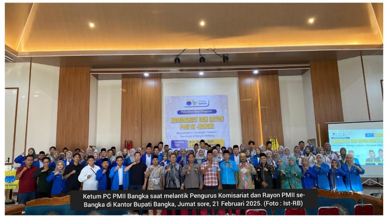 BANGKA,Inewsnusantara.com – Pengurus Cabang (PC) Pergerakan Mahasiswa Islam Indonesia (PMII) Bangka menggelar Pelantikan Raya Pengurus Komisariat dan Rayon PMII se- Bangka di Kantor Bupati Bangka, Jumat sore (21/02/2025).