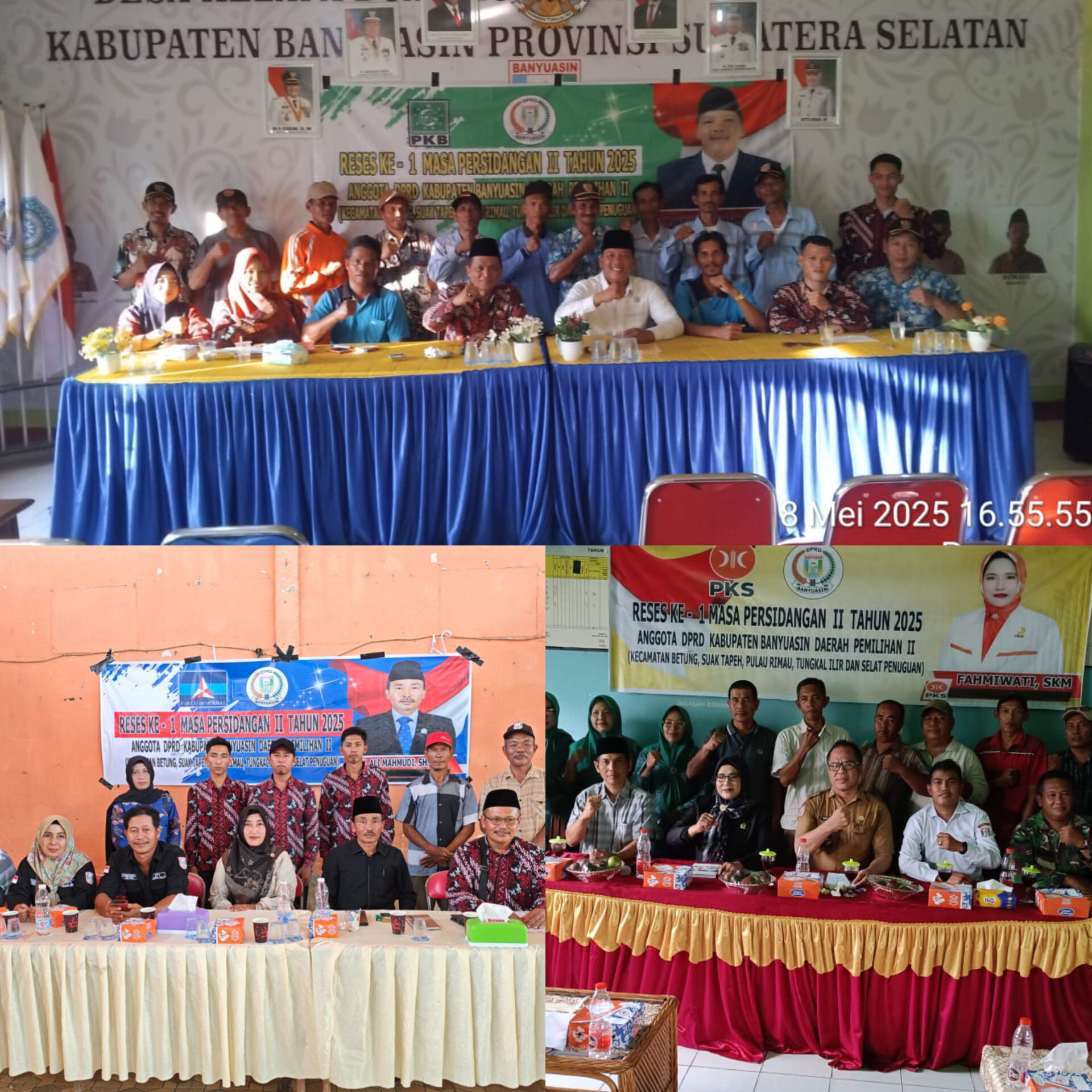 Seperti halnya yang dilakukan 8 orang anggota DPRD Kabupaten Banyuasin di dapil II yang meliputi Kecamatan Betung, Kecamatan Suak Tapeh, Kecamatan Tungkal Ilir, Kecamatan Pulau Rimau dan Kecamatan Selat Penuguan.
