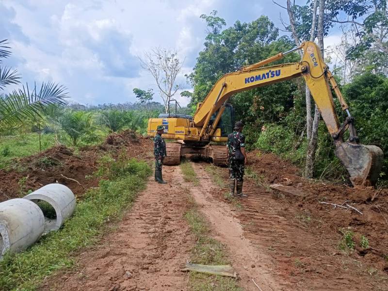 Pastikan Pekerjaan Maksimal, Danramil 402-03/SP Padang Monitoring Pembukaan Jalan