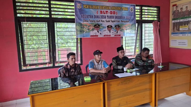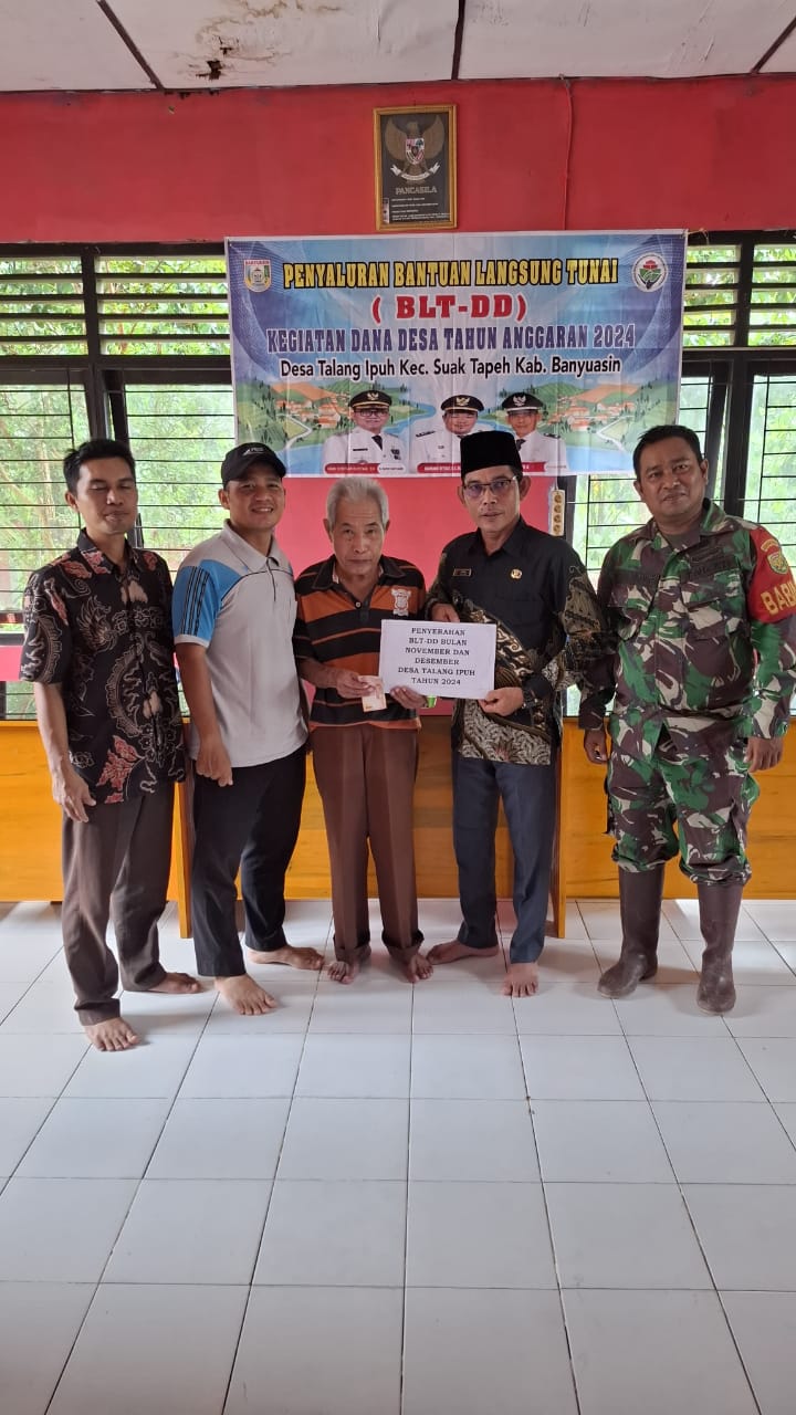 BANYUASIN,inewsnusantara.com,- Pemerintah Desa (Pemdes) Talang Ipuh, Kecamatan Suak Tapeh, kembali menyalurkan Bantuan Langsung Tunai Dana Desa (BLT DD) tahap akhir Periode bulan November dan Desember tahun anggaran 2024, di Kantor Desa setempat, Jum’at (13/12) kemarin.