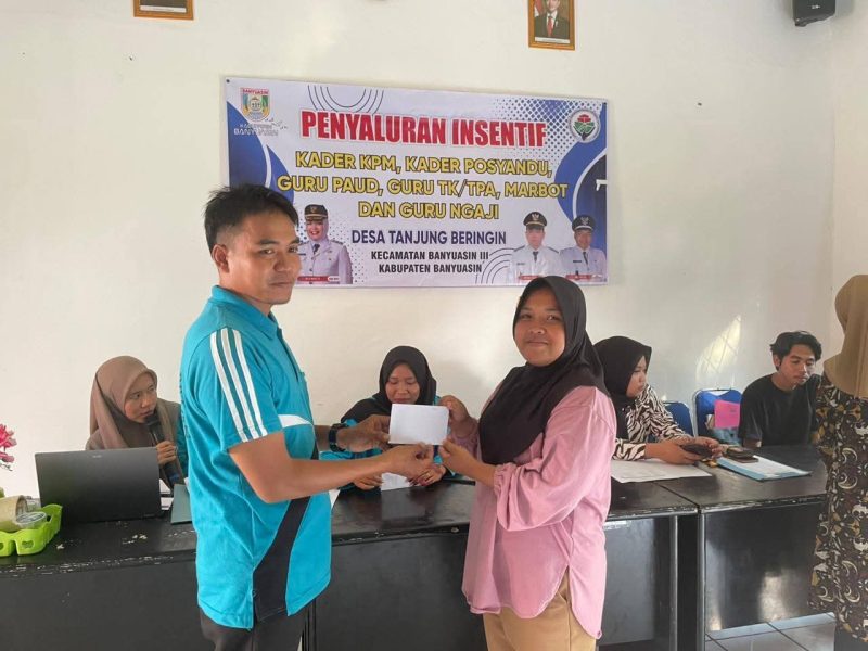 BANYUASIN, inewsnusantara.com,- Pemerintah Desa (Pemdes) Tanjung Beringin, Kecamatan Banyuasin III, menunjukan komitmennya dalam mendukung pelayanan kesehatan masyarakat melalui pemberian insentif para Kader yang telah berkontribusi di desa.