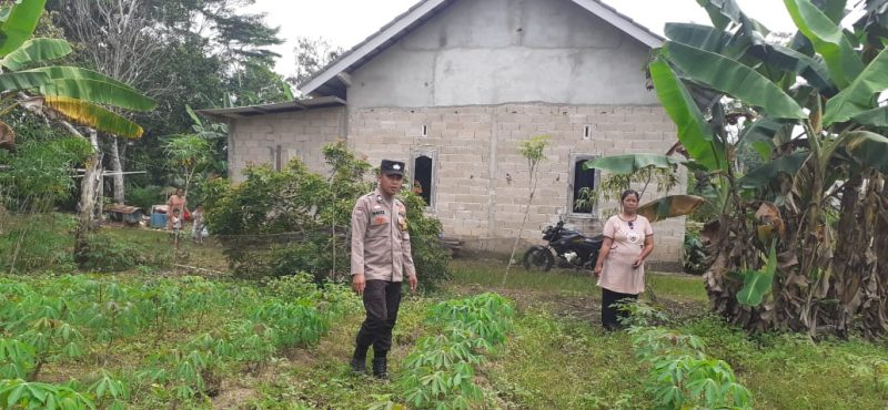 Brigpol Havez Rinaldo melaksanakan pengecekan lahan di Pekarangan rumah ibu Fatimah di Desa Sedang Kecamatan Suak Tapeh Kabupaten Banyuasin.
