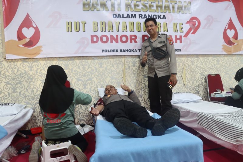 Koba, inewsnusantara.com,– Polres Bangka Tengah menggelar kegiatan bakti kesehatan donor darah dalam rangka memperingati Hari Ulang Tahun (HUT) Bhayangkara ke-79.