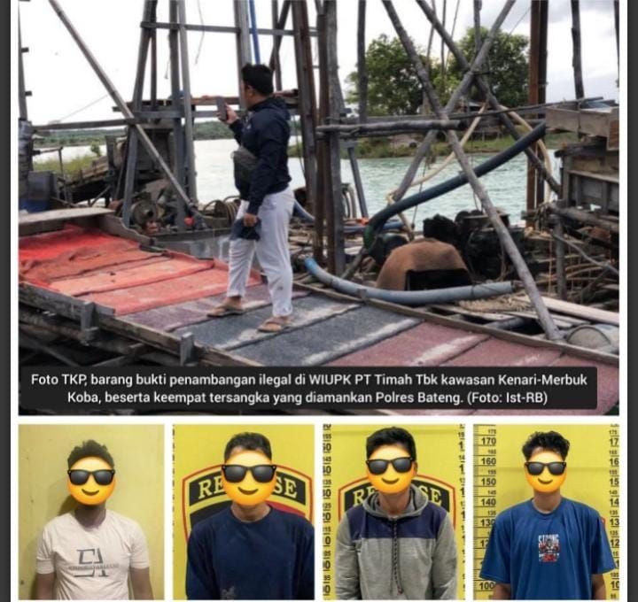 Pada Sabtu pekan kemarin (15/02/2025), tim kepolisian berhasil mengamankan empat pelaku penambangan ilegal di areal kolong Merbuk, eks PT Kobatin, yang telah dialihkan ke Wilayah Izin Usaha Pertambangan Khusus (WIUPK) PT Timah di Kecamatan Koba, Bateng.