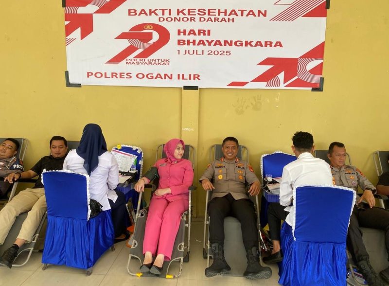 OGAN ILIR,inewsnusantara.com,- Polres Ogan Ilir menggelar kegiatan Bakti Kesehatan (Baktikes) berupa donor darah dan khitanan massal dalam rangka menyambut HUT ke-79 Bhayangkara.