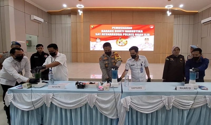 “Barang bukti dua macam narkoba ini dimusnahkan dengan cara diblender dan dibuang ke saluran air,” kata Bagus di Mapolres Ogan Ilir, Rabu (18/2/2026) petang.
