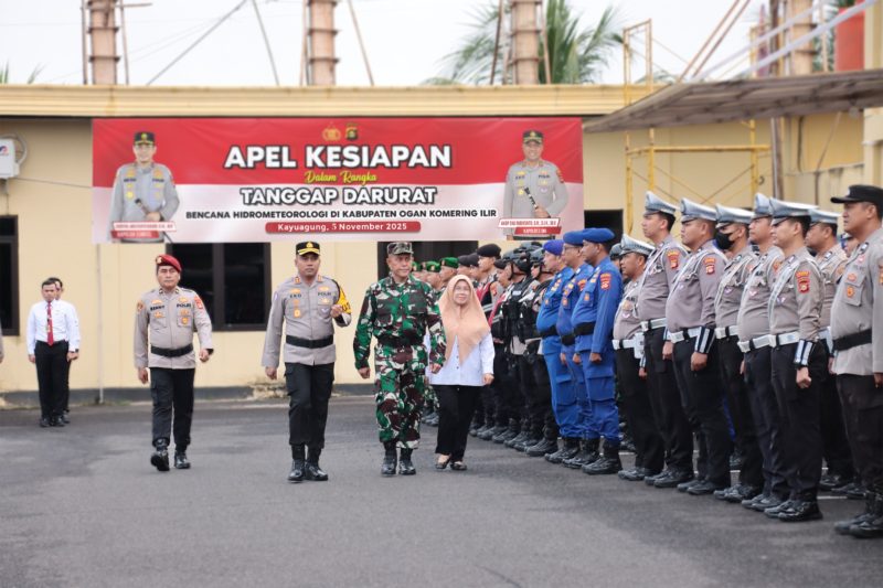 OKI, inewsnusantara.com-Polres Ogan Komering Ilir (OKI) menggelar Apel Kesiapan dalam rangka Tanggap Darurat Bencana Hidrometeorologi di Lapangan PDK Polres OKI pada Rabu (05/11/2025) pukul 07.00 WIB.
