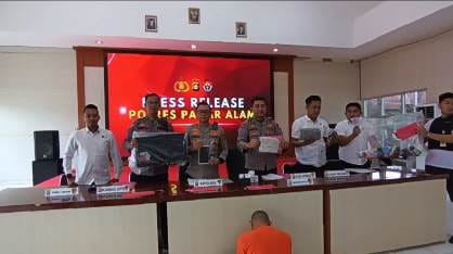 Kapolres Pagaralam AKBP Januar Kencana Setia Persada S.Ik saat memimpin press release didampingi Kabag Ops Kompol Herry Widodo SH, Kasat Reskrim Iptu Irawan Adi Candra SH, serta Kasi Humas Iptu Mansyur SH, menegaskan pihaknya berkomitmen menuntaskan kasus ini.