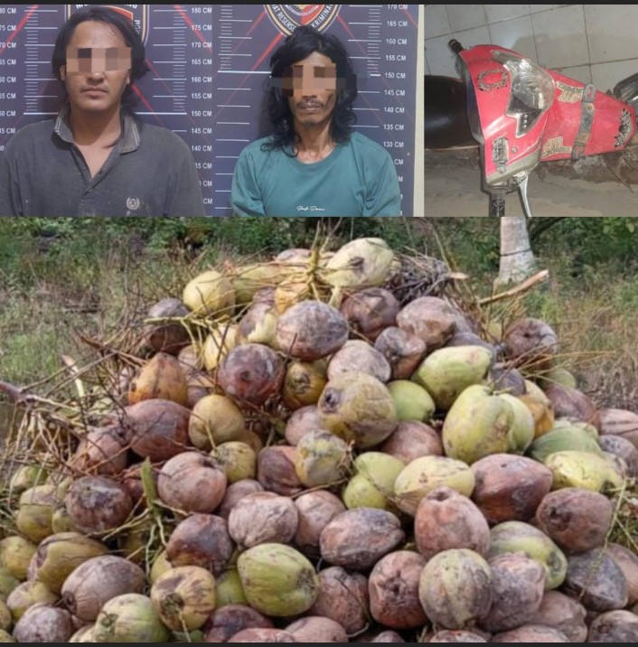 Kapolsek menuturkan, bahwa pelaku SO dan RI berhasil diringkus pada Sabtu (4/1) sekira jam 23.30 WIB. Dimana keduanya sudah diamankan oleh warga di Kantor Desa Sumber Mulyo. Dan kedua pelaku mengakui bahwa ia telah melakukan pencurian buah kelapa milik korban bersama RL (DPO).