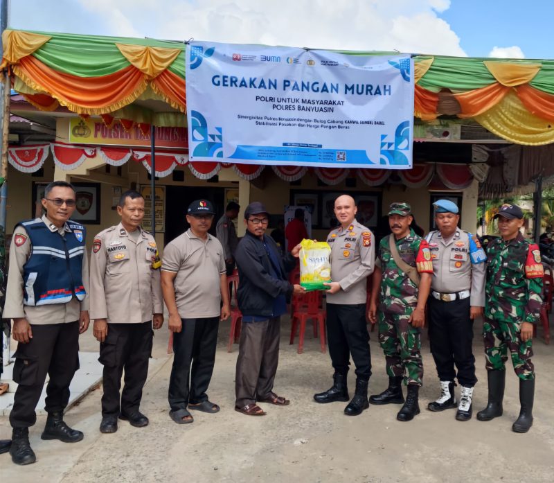 BANYUASIN,inewsnusantara.com, – Polres Banyuasin bekerjasama dengan Perum Bulog sukses menggelar Gerakan Pangan Murah (GPM). Sebanyak 10 ton beras berkualitas dengan harga terjangkau ludes terjual kepada masyarakat dalam waktu singkat.