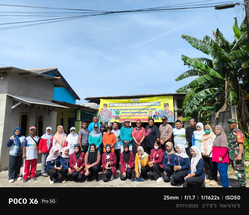 Pangkalpinang, inewsnusantara.com — Dalam rangka menyambut datangnya musim hujan, Polsek Gerunggang bersama unsur pemerintah dan masyarakat melaksanakan kegiatan kerja bakti serta pemeriksaan kesehatan gratis di Jalan Meranti Gang Sakura 3, RT 004 RW 002, Kelurahan Bukit Sari, Kecamatan Gerunggang, Kota Pangkalpinang, Jumat (6/11/2025) pagi.