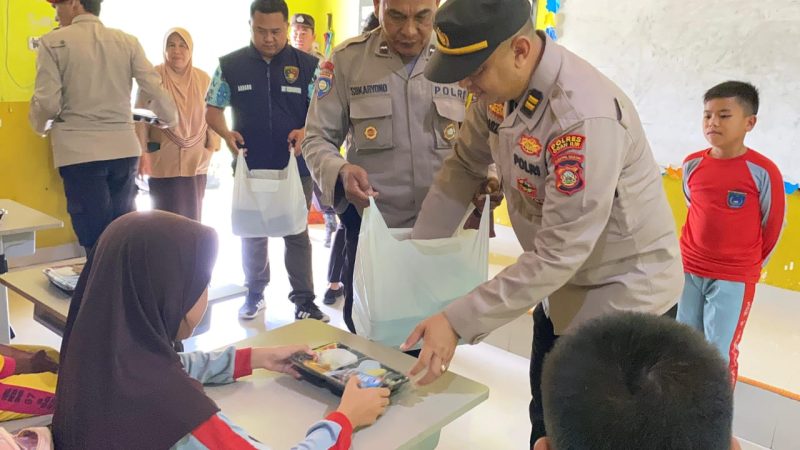 OGAN ILIR, inewsnusantara.com– Sat Binmas dan Satresnarkoba Polres Ogan Ilir membagikan makan sehat dan bergizi kepada para pelajar di SDN 07 Indralaya Utara.