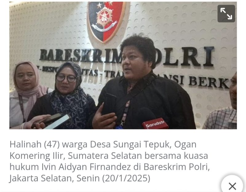 Halinah (47), warga desa Sungai Tepuk Kecamatan Sungai Menang Kab. OKI, Sumatera Selatan ini dikutip dari media online tribunews. Com didampingi kuasa hukumnya Ivin Aidyan Firnandez di Bareskrim Polri, Jakarta Selatan, Senin (20/1/2025) mengaku kecewa lantaran laporan keluarga korban tak ditanggapi kepolisian setempat.